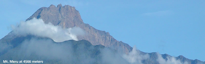 Located to the east of Arusha town, about 20 kilometers drive from Arusha; Mount Meru is the second highest mountain in Tanzania. The mountain stands at an altitude of 4566 meters above sea level inside the Arusha National Park.
